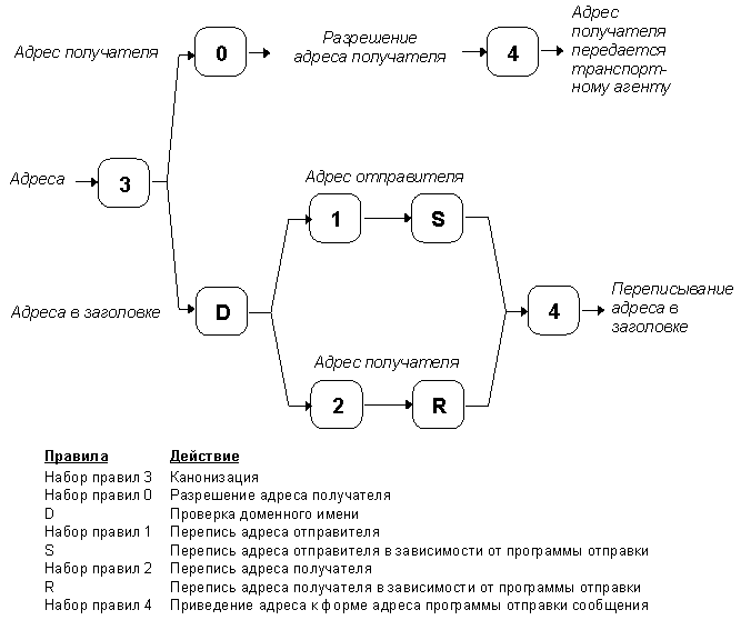 командной строки адрес получателя и оба адреса преобразуются в соответствии с