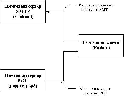 пользователя на машине-сервере, SMTP-сервер и POP (Ph) сервер. Как видно из