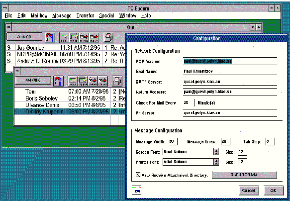 И последнее замечание относительно работы из под MS-Windows с почтой в