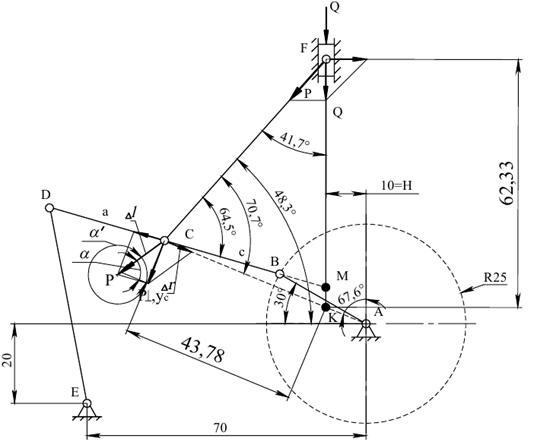 точки О: l1= 20 мм, l2= 50 мм, l3= 88 мм, l4=