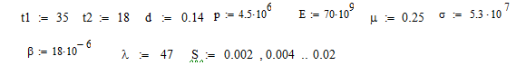 залежності напруження від товщини стінки за допомогою програми Mathcad