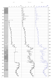жесткости и получены данные о скоростях Vp ниже забоя скважины до