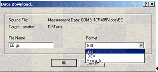 .2.4 Передача информации с тахеометра в компьютер