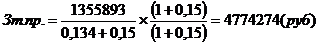 Зг пр=Ц+Зэксп+Зниокр=314160+1041733+1477750=1355893 (руб)