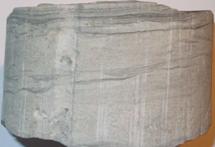 темно-серый массивный средней крепости слюдистый с прослоями алевролита