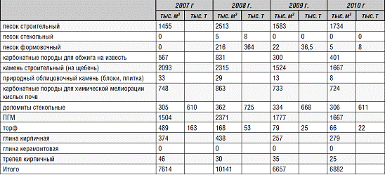 полезных ископаемых в 2010 году выглядит следующим образом: карбонатные породы
