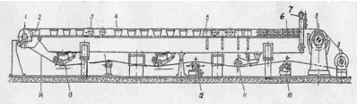 механизм тряски; 9- электродвигатель; 10- горизонтальные пружины; 11-