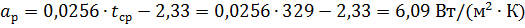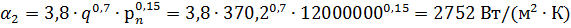 Коэффициент теплоотдачи от пирогаза к внутренней