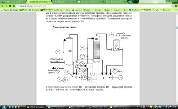 процесса производства серной кислоты.