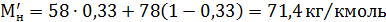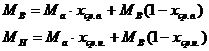 Пересчитаем составы фаз из массовых долей в мольные по соотношению:
