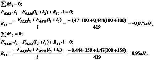 ЕIf2 - EIf1+ EIθ1l-Ry1×l3/6 - Ft12,13× (l2+l3) 2/2+ Fr14,15×l3/6 = 0
