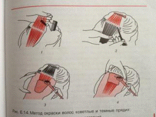 разделяются на зоны, зоны - на пряди, и каждая прядь окрашивается отдельно