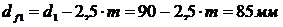Диаметр окружности впадин зубьев