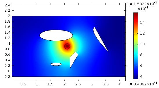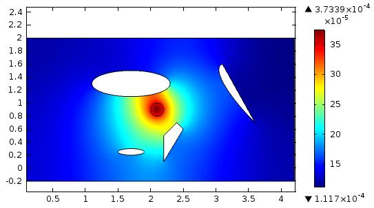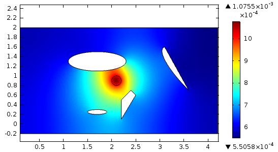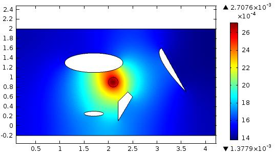 препятствий(пустот), так же был перемещен актуатор, как видим волновая картина