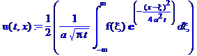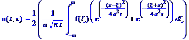 diff(u(t,x),t)=a^2*diff(u(t,x),x,x);(U(t,x),t)=a^2*diff(U(t,x),x,x);