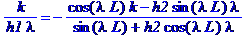 > k/h1/lambda=-(cos(lambda*L)*k-h2*sin(lambda*L)*lambda)/