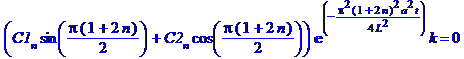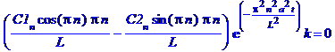 >simplify((C1[n]*sin(1/2*Pi*(1+2*n))+C2[n]*cos(1/2*Pi*(1+2*n)))*exp(-1/4*Pi^2*(1+2*n)^2/L^2*a^2*t)*k