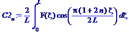 > C2[n]:=(2/L)*int(F(xi)*cos(1/2*Pi*(1+2*n)/L*xi), xi=0..L);