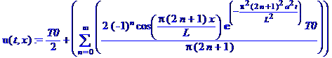 > u(t,x):=sum(4*cos(1/2*Pi*(1+2*n)/L*x)*exp(-1/4*Pi^2*(1+2*n)^2/L^