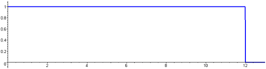 > T0:=1; a:=1;L:=12;(x):=x->piecewise(x<L/2,T0, x<L,0);