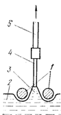 заготовки, окружен в верхней части высокочастотным индуктором 2, внутри