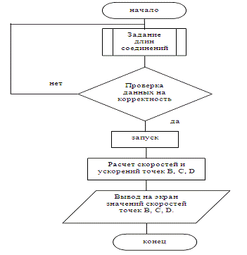 приращения угла поворота; подсчет значений скоростей и ускорений точек. В