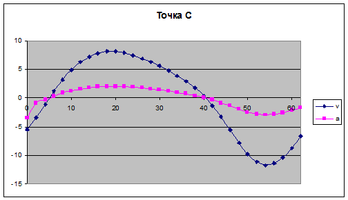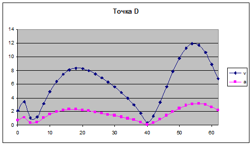 Рисунок 10 - зависимость скорости и ускорения точки D от t