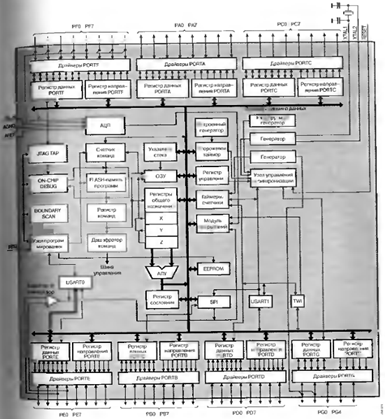 внутренних функциональных устройств и объектов ввода-вывода микроконтроллера.