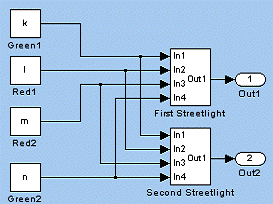 сигнал на втором выходе). Таким образом, работа светофоров оказывается синхронизированной.