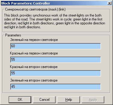 красному. Работа светофоров синхронизирована в соответствии с условиями задачи.