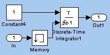 текущему значению элемента Discrete-time Integrator добавляется величина очередного такта интегрирования; если на