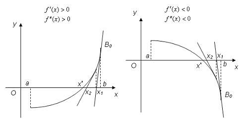 что первая и вторая производная сохраняют знак на интервале [a, b]. Метод