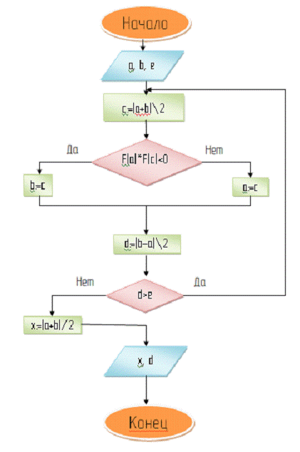 Блок-схема алгоритма к методу дихотомии