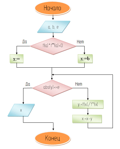 Блок-схема алгоритма к методу касательных