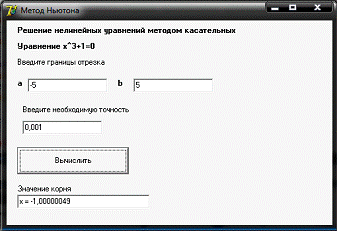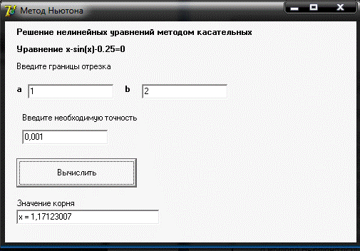 Рисунок 9. Результат работы программы для метода касательных на языке Delphi
