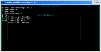 noviy zal"),nl,(Zal_new),(trener(Fam_tr,_,_,_,_)),(trener(Fam_tr,Im_tr,Ot_tr,Telephone,Zal_new)),menu.('1'):-makewindow(25,7,3,"Trenery",5,5,15,60),_tr(Fam_tr,Im_tr,Ot_tr,Telephone,Zal),(1).('2'):-makewindow(26,7,3,"Klienty",5,5,15,60),_kl(Fam_kl,Im_kl,Ot_kl,Telephone,Zal,Fam_tr),(1).:-existfile("zal.ddb"),("zal.ddb"),(f,"zal.ddb"),(f),.