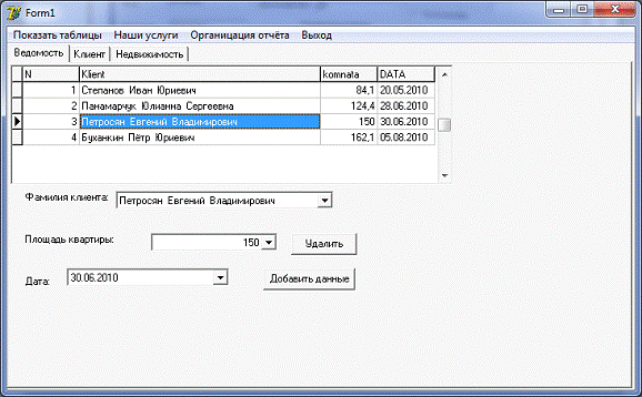 квартиры, расценках на оказываемые услуги, о покупателях и совершенных