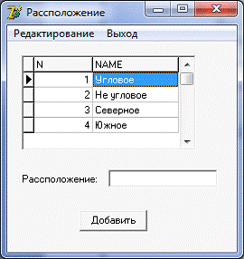 Рис. 2.1.5 Вікно для роботи з таблицею «Розташування»