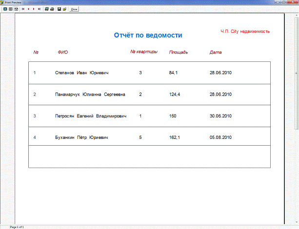 прайс-лист на квартиры (возможно с группировкой по различным признакам), на