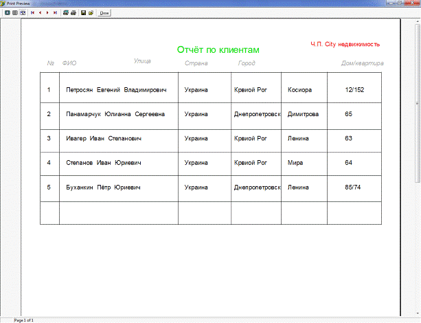 Рис. 2.1.7 Вікно друкування звіту про клієнтів