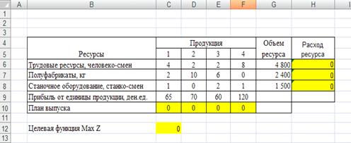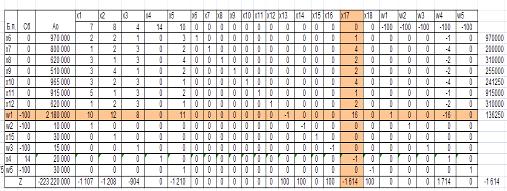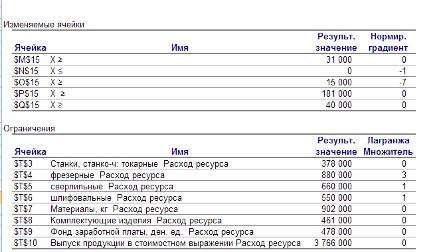 используется при производстве оптимального плана продукции. А столбец «Лагранжа