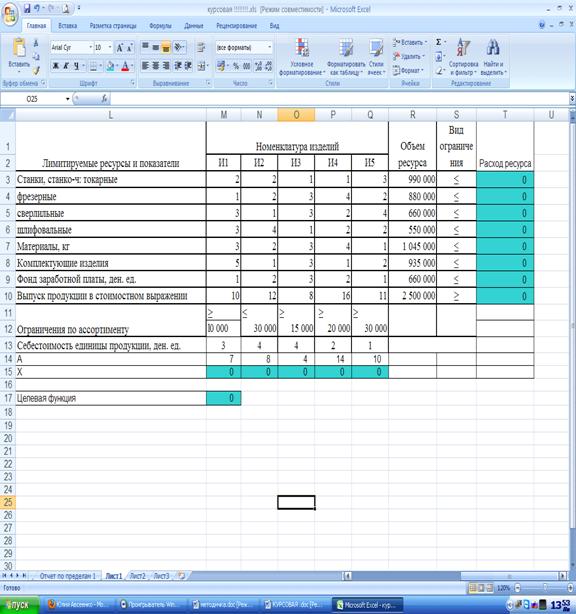продукции; аi - фонд времени работы оборудования j-й группы; Ri-общий объем i-го