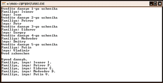 do('Vvedite dannye ', i, '-go uchenika');('Familiya: ');(uch1.fam);('Imya: