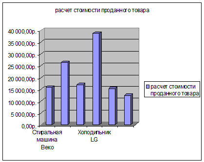 диаграмму, отражающую данные о стоимости проданного товара каждого