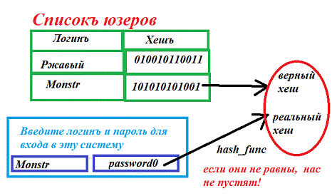Наглядно эту схему защищённого хранения паролей с помощью