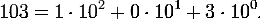 Например, число сто три представляется в десятичной системе счисления в