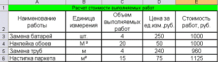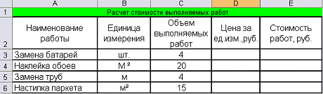 · Заполнить графу Стоимость работ,