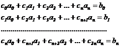 линейных уравнений, составленная на основе вычисленной матрицы коэффициентов в