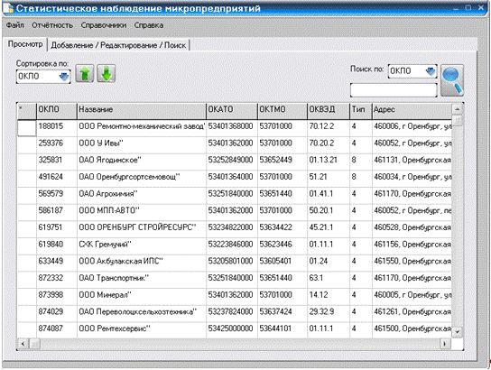 сотрудниками предприятия «Оренбургстат», поэтому она имеет простой интерфейс,