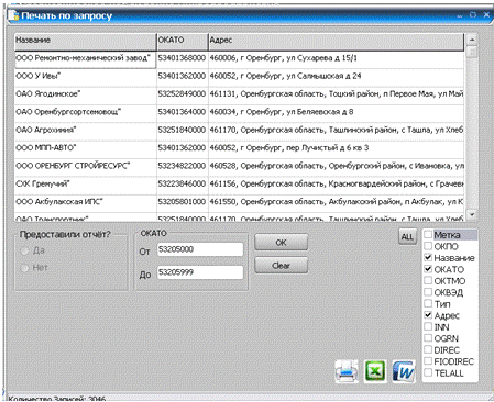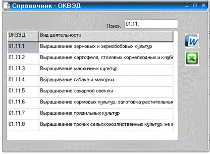 являются: информация о предприятиях, справочник ОКАТО и ОКВЭД;